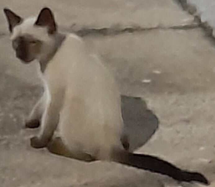 Gato(a) filhote de aproximadamente 4 meses, com pelagem clara, focinho, orelhas e cauda escuros. Olhos azuis e pelagem contrastante nas extremidades. Foi perdida no Lot. Vila Esperança - região do Jd São Marcos em Campinas - SP. Se você a encontrou, por favor entre em contato.
